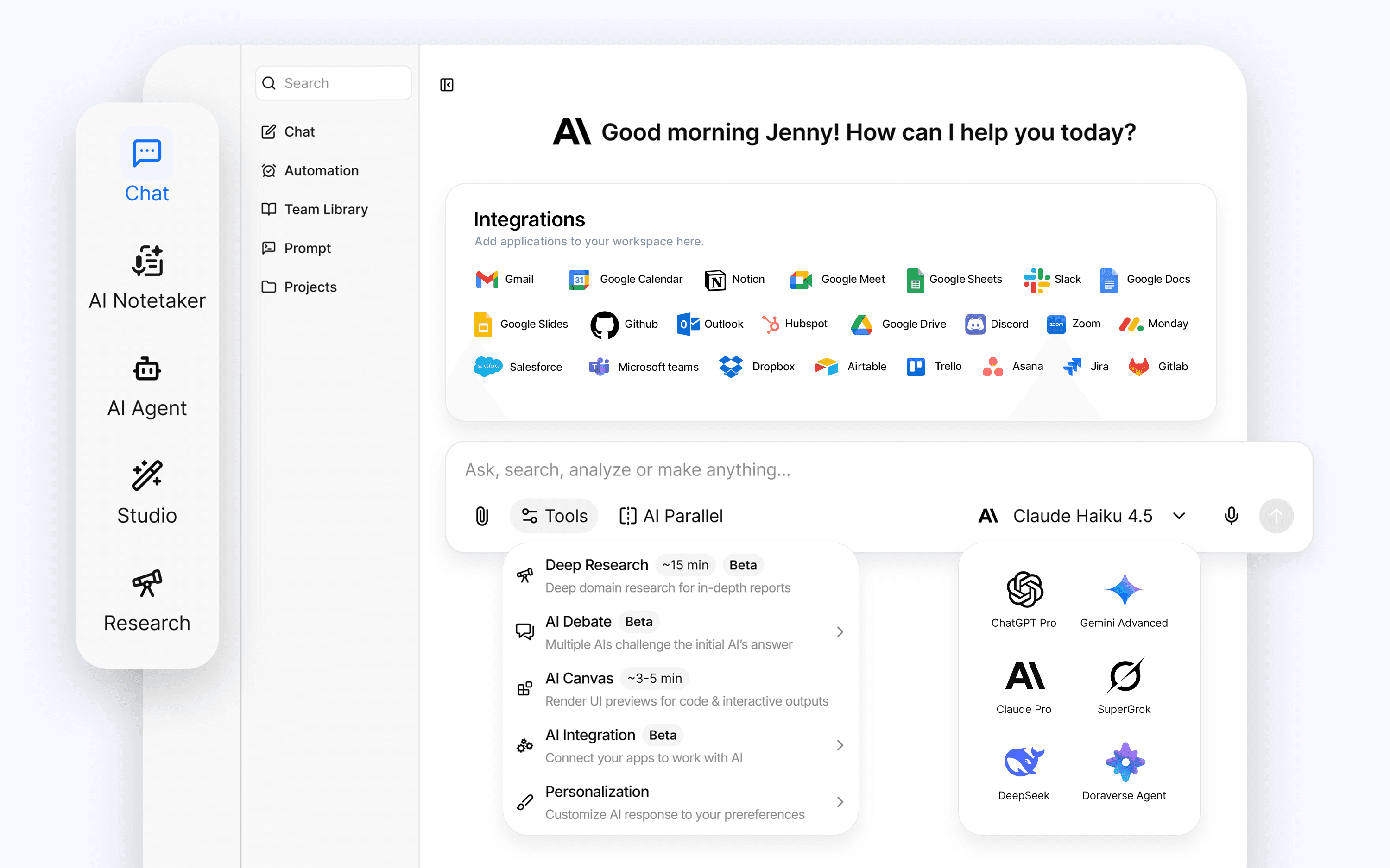 Access to leading AI models: GPT-5.1, Gemini 3, Claude 4.5, etc.