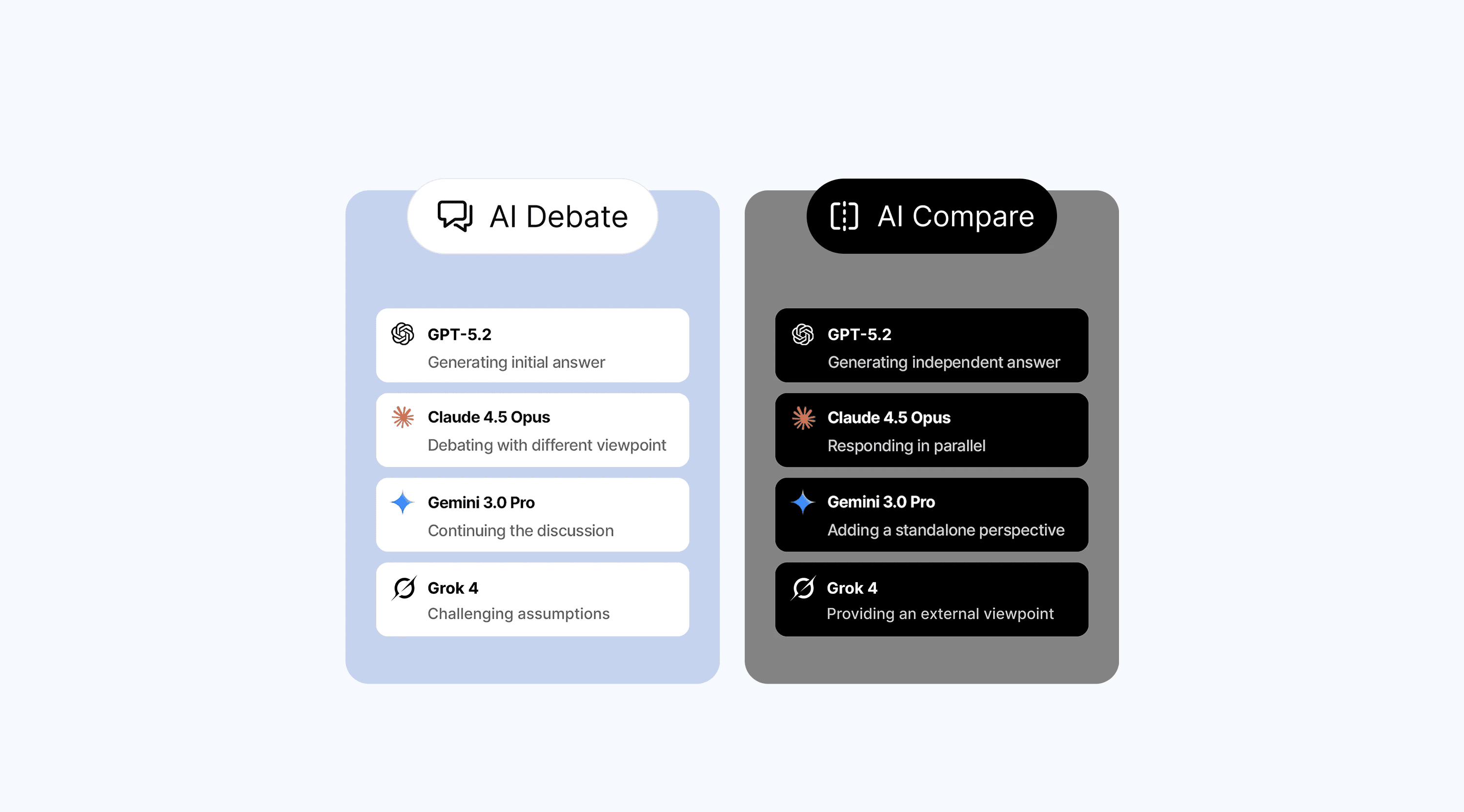 Have multiple AI models debate your question or compare answers for the strongest recommendation.