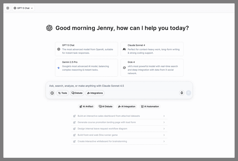 Instantly switch between powerful AI models to get the best response for every task — writing, coding, searching, and more.