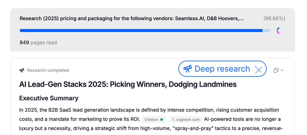 Deep Research is Doraverse’s AI-powered research assistant. It works like a dedicated research team: planning your investigation, searching across the web, and synthesizing hundreds of online sources to create a comprehensive, analyst-level report.