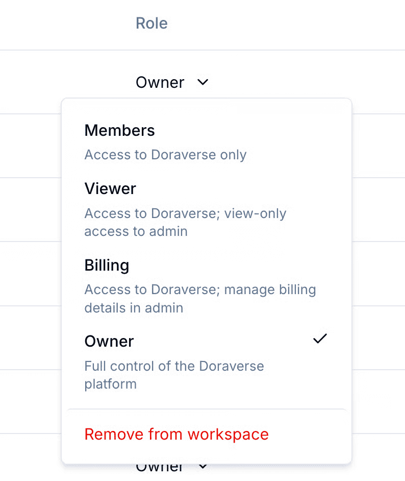 Member – Access to Doraverse features only (no access to Admin Settings).