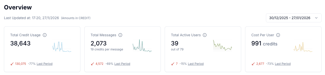Total Credit Usage: The total number of credits consumed within the selected timeframe.