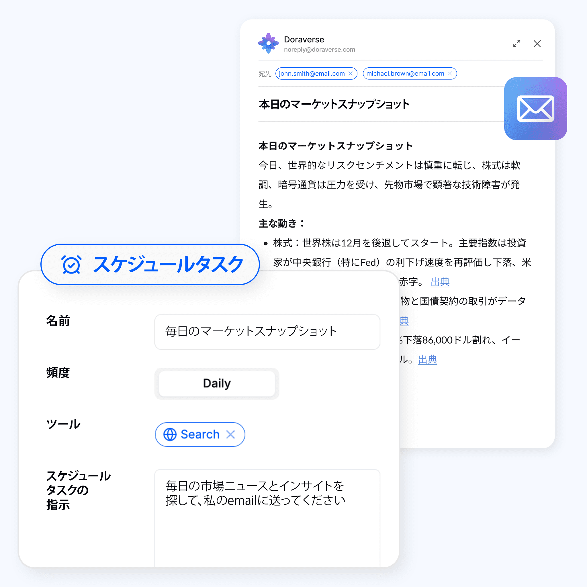 "以前はバラバラのツールを行き来するのに多くの時間を失っていました。Doraverseはすべてを安全なワークスペースに統合し、チームが足並みを揃えて日々の業務をより早く完了できるようになりました。"