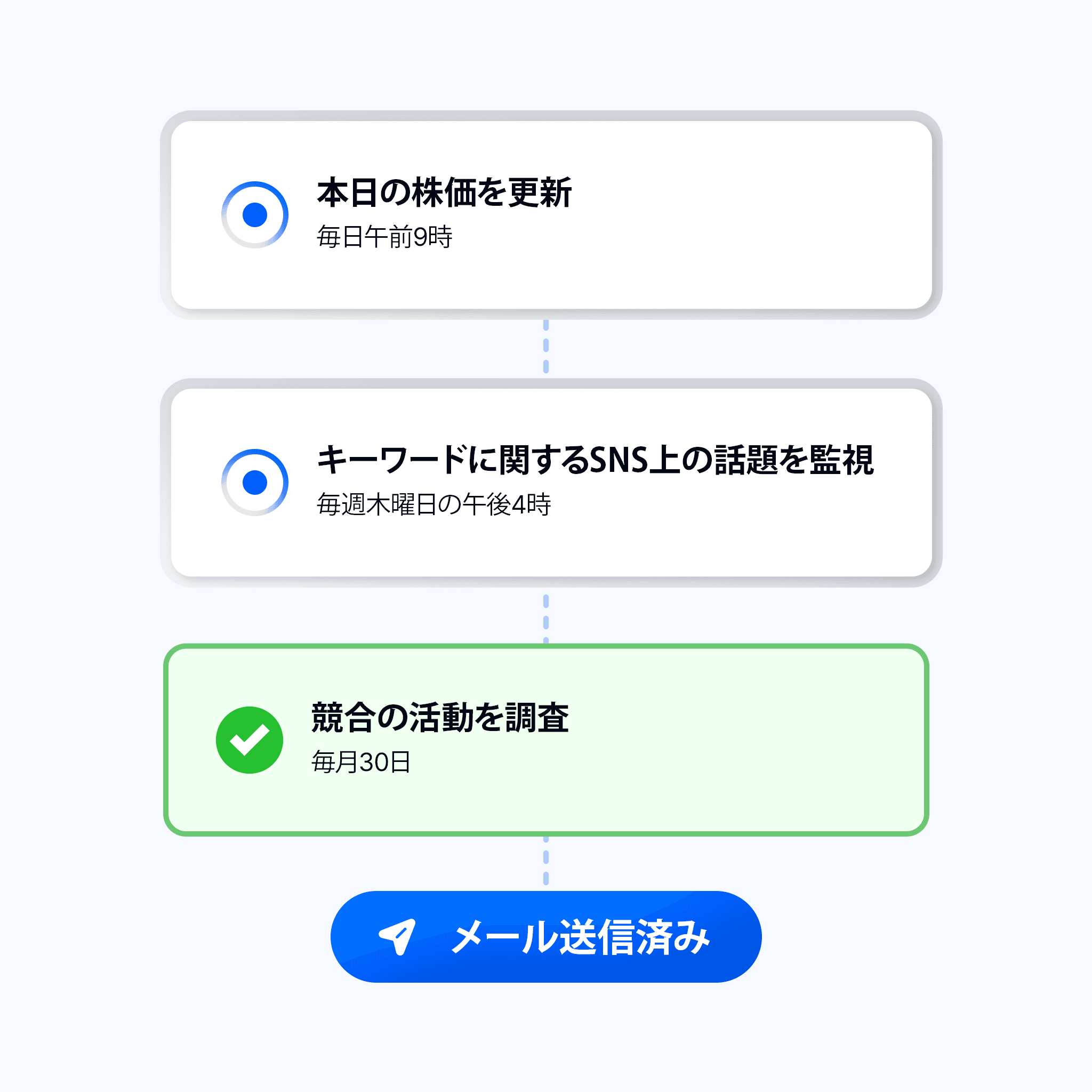 自社の業務やルールを理解したAIが、調査・作業・判断を代行。