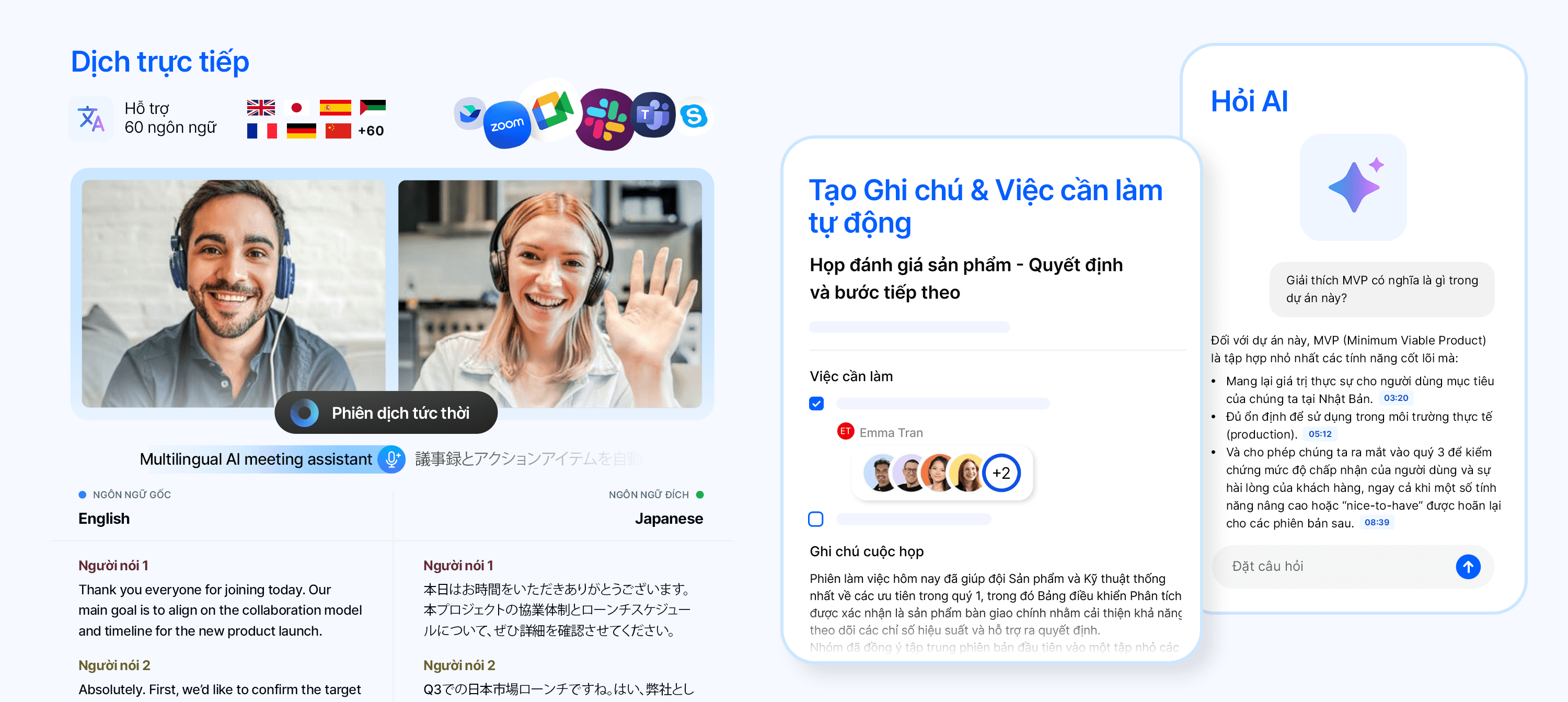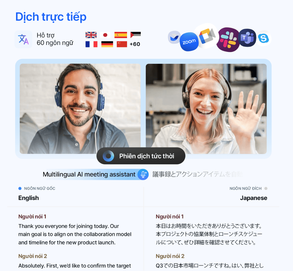 Nâng cao độ chính xác, sự rõ ràng và liền mạch khi giao tiếp đa ngôn ngữ trong cuộc họp, thúc quyết định tốt hơn và công việc hiệu quả hơn.