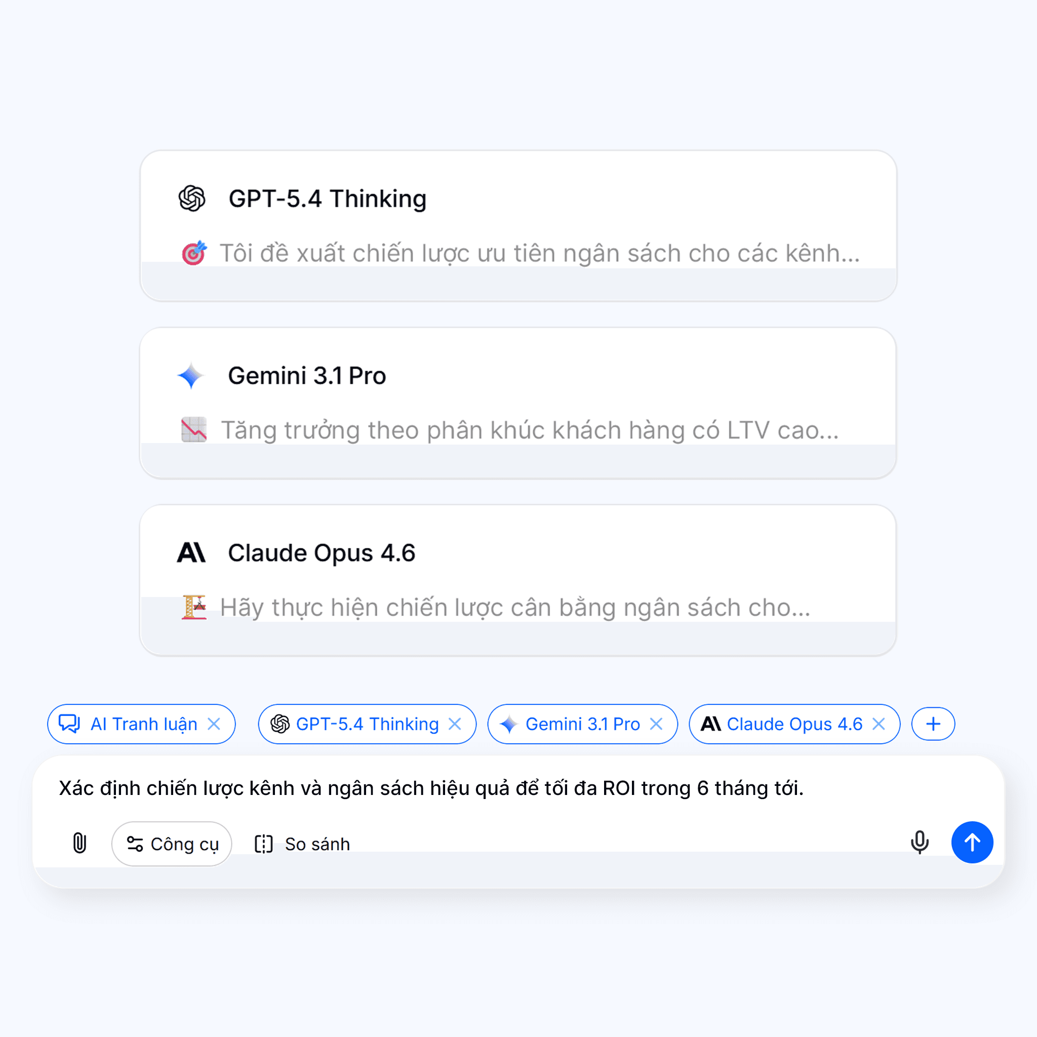Kết hợp nhiều AI cùng làm việc để đưa ra đề xuất toàn diện và chính xác hơn.
